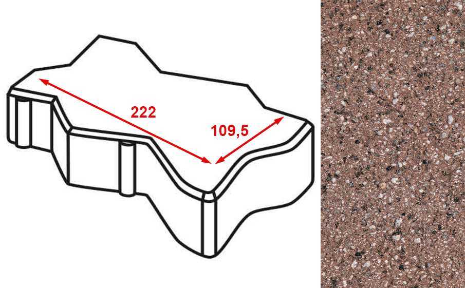 Плитка тротуарная Готика Granite FERRO, зигзаг/волна, Емельяновский 222x109,5x60 мм