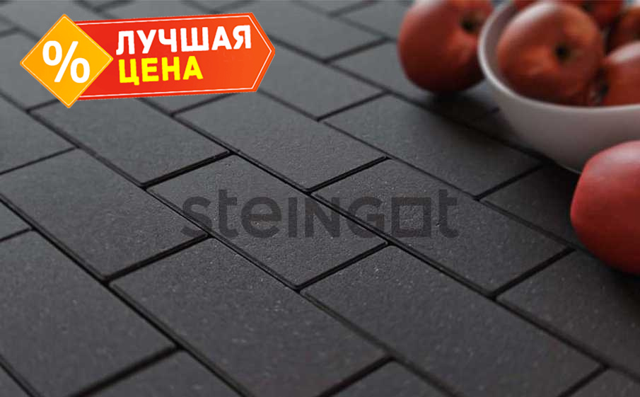 Плитка тротуарная Steingot Моно, Прямоугольник, фаска 1,5x1,5, черный, 200x100x60 мм