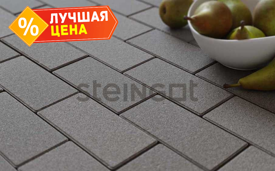 Плитка тротуарная Steingot Моно, Прямоугольник, с фаской 1,5x1,5, серый, 200x100x60 мм